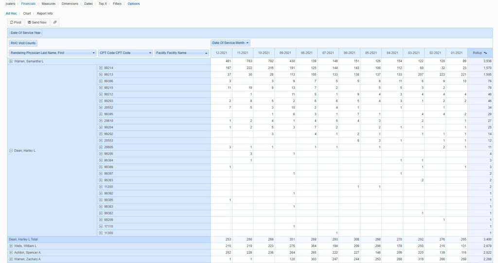 2. Ad Hoc Analysis Tool Showing RHC Qualified Visits by Provider and CPT Code